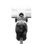 ارگونومی و حس در دست گرفتن: جارو وزن متعادلی دارد. نه آنقدر سبک است که حس یک اسباببازی را بدهد و نه آنقدر سنگین که بعد از چند دقیقه کار کردن، مچ دستتان را خسته کند. دستهی آن با یک انحنای کاملاً مهندسیشده طراحی شده که به راحتی در دست جای میگیرد و دکمههای پاور و تغییر حالت، دقیقاً زیر انگشت شست شما قرار دارند تا کنترل کاملی روی دستگاه داشته باشید.