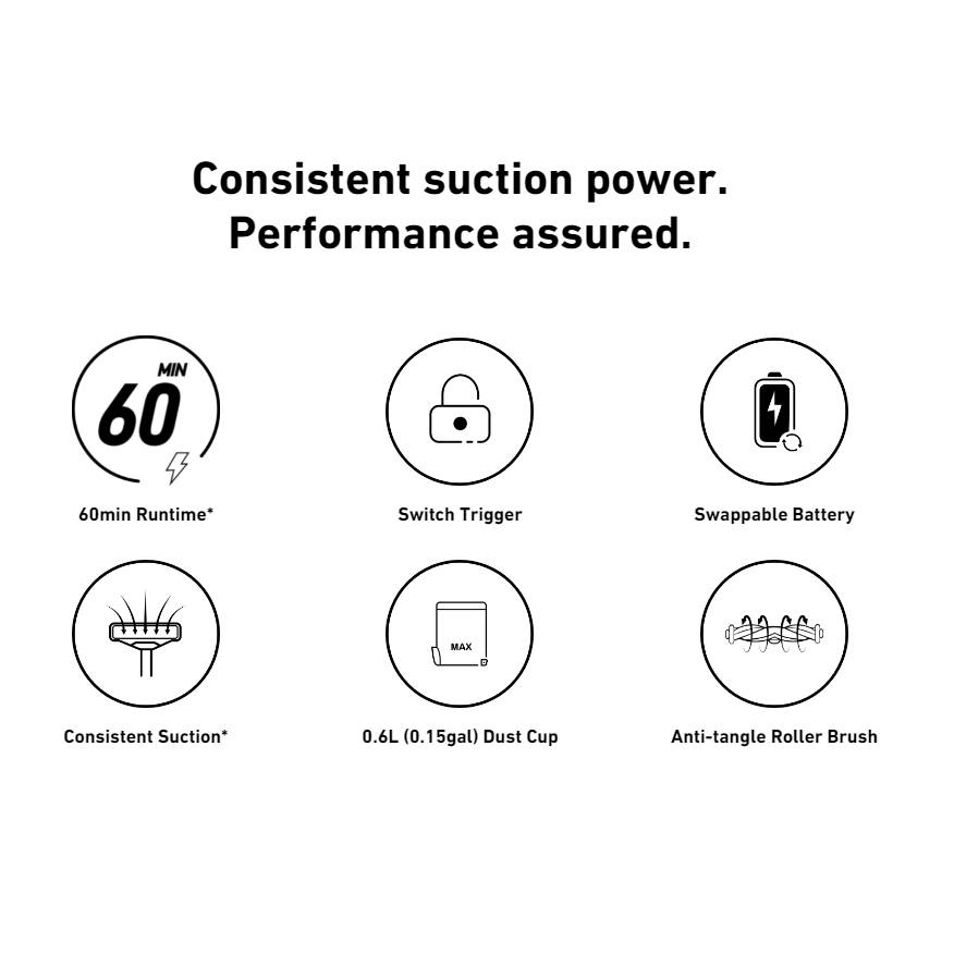 باتری این جارو یکی از مزیت های بزرگ آن به شمار می آید چرا که قابل تعویض بوده و پس از پایان عمر باتری میتوانید باتری جدیدی را جایگزین قبل کنید. ظرفیت باتری این محصول 2500 میلی آمپر بوده و به کمک طراحی بهینه موتور جارو، بیش از یک ساعت با یکبار شارژ در حالت Eco کار کرده و پس از اتمام باتری تنها در 3.5 ساعت کامل شارژ خواهد شد.